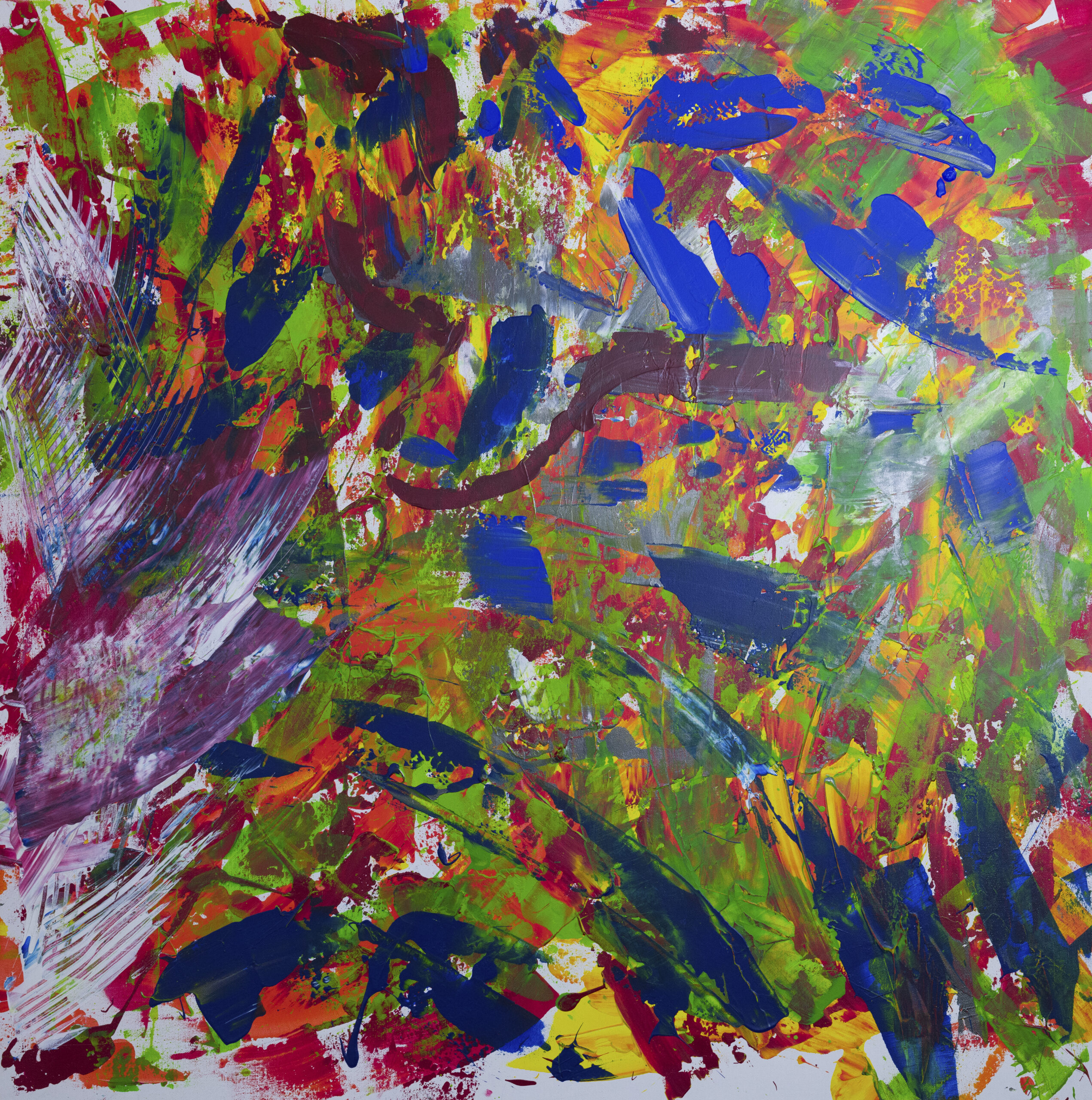 „Fire in the Jungle“ Acryl auf Leinwand, 100×100 cm, Ungerahmt